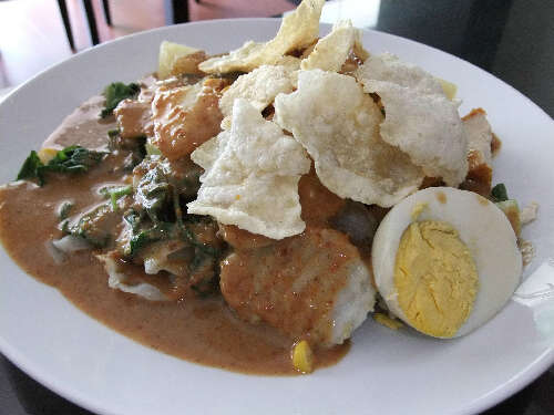 Gado-gado adalah salah satu makanan yang berasal dari Indonesia yang berupa sayur-sayuran yang direbus dan dicampur jadi satu, dengan bumbu atau saus dari kacang tanah yang dihaluskan disertai irisan telur dan di atasnya ditaburkan bawang goreng. Sedikit emping goreng atau kerupuk (ada juga yang memakai kerupuk udang) juga ditambahkan.