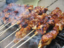 Sate atau kadangkala ditulis satay atau satai adalah makanan yang terbuat dari potongan daging (ayam, kambing, domba, sapi, babi, ikan, dan lain-lain) yang dipotong kecil-kecil,dan ditusuki dengan tusukan sate yang biasanya dibuat dari bambu, kemudian dibakar menggunakan bara arang kayu. Sate kemudian disajikan dengan berbagai macam bumbu (bergantung pada variasi resep sate). Biasanya sate diberi saus. Saus ini bisa berupa sambal kecap, sambal kacang, atau yang lainnya. Untuk sate bebek Tambak menu lengkapnya adalah sate, saus bumbu manis kacang tanah atau bumbu pedas (menurut selera) dan irisan tomat serta mentimun. Lalu sate dimakan dengan nasi hangat atau, kalau di beberapa daerah disajikan dengan lontong. Kadang-kadang sate dimakan dengan ketupat.